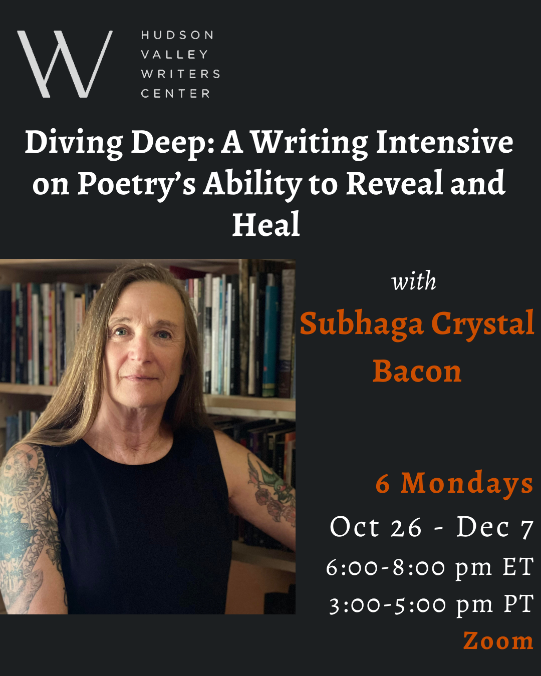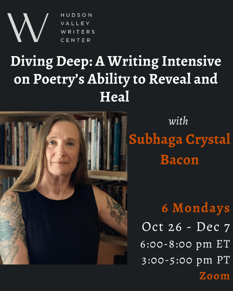 $60/session includes written feedback on 3-5 poems plus a one-hour Zoom call to discuss your work. Email Subhaga to schedule a complimentary introductory session!